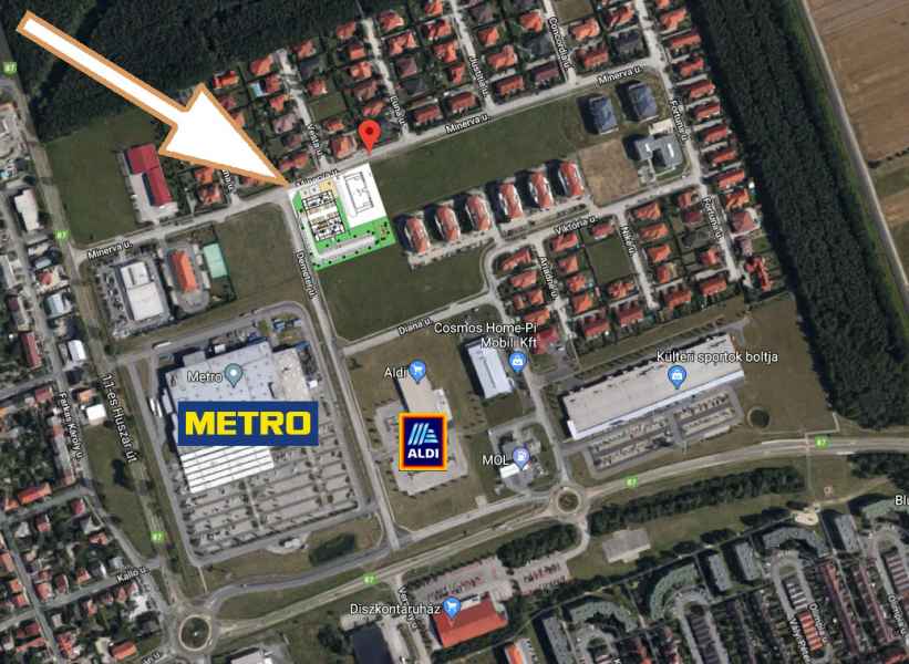 A környék zöldövezeti és csendes családias lakópark, de emellett frekventált is. A ház környékén közvetlen közelben bevásárlási lehetőségek, sportlétesítmények is találhatók. Ugyanakkor a városközpont is gyorsan elérhető, autóval a 11-es Huszár úton, tömegközlekedéssel pedig a 6-os busszal juthatunk el a belvárosba. Így sem a városi pezsgésről, sem a nyugodt otthonról nem kell lemondania az ÁTRIUM-HÁZ lakóinak.